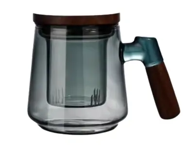 الصفحة الرئيسية اثاث كوب زجاجي مع مصفاة شاي ومقبض خشبي