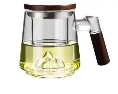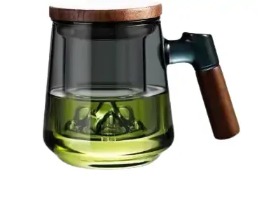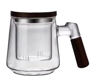 الصفحة الرئيسية اثاث كوب زجاجي مع مصفاة شاي ومقبض خشبي